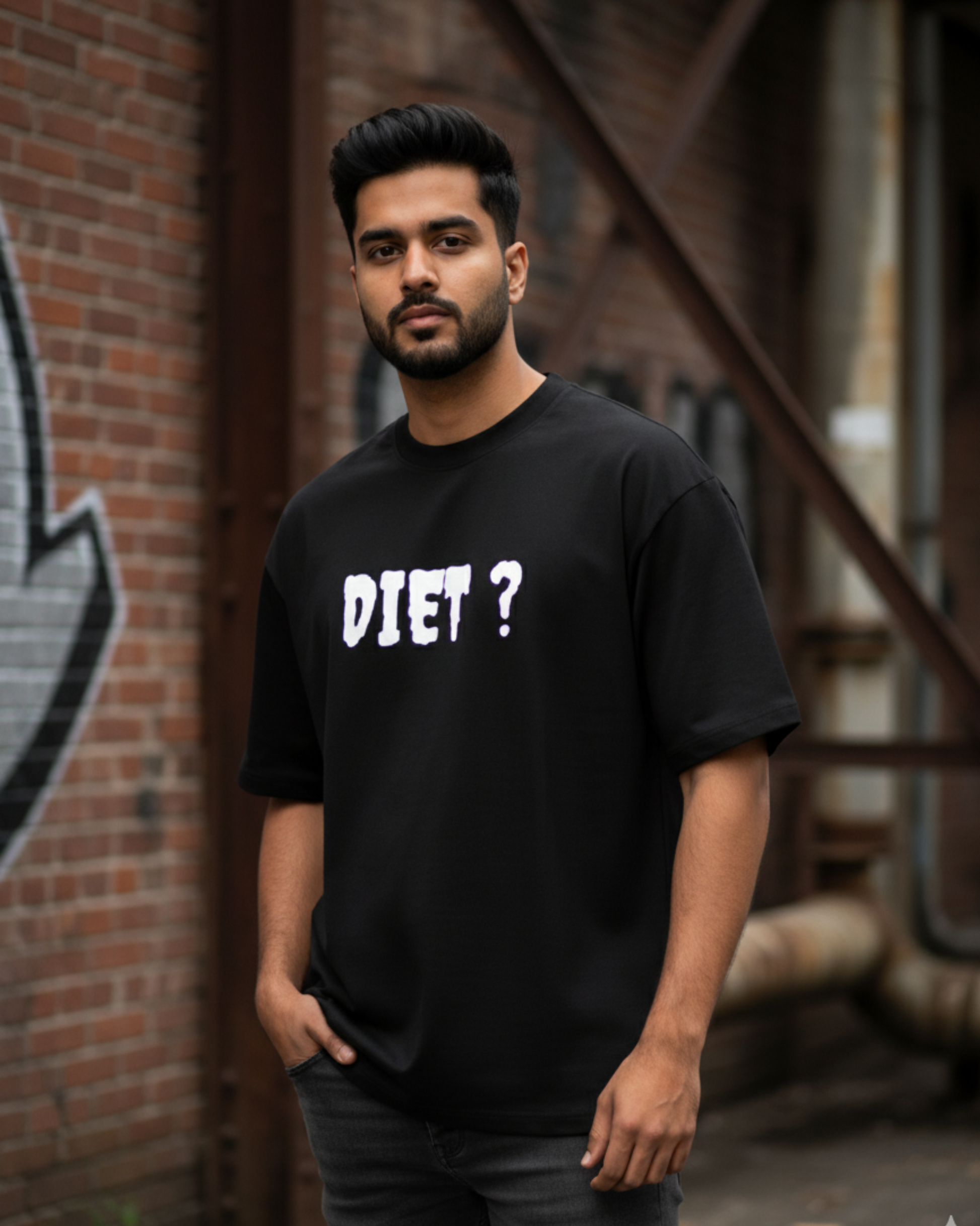 This oversized tee is made for unapologetic food lovers — the kind who skip the salad, double down on dessert, and proudly live the snack life. The front? Just one word: “DIET?” Mysterious. Sarcastic. Perfect.